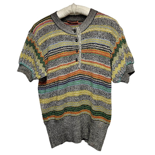 MISSONI ミッソーニ 幾何学柄ヘンリーネック半袖ニット オールド ヴィンテージ vintage ジグザグ 古着 3522