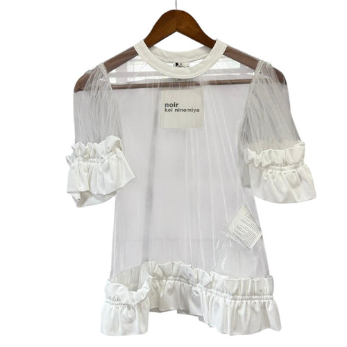 noir kei ninomiya ノワールケイニノミヤ 25SS ナイロンチュール綿ポンチカットソー Tシャツ 3O-T019 XS ホワイト 14833