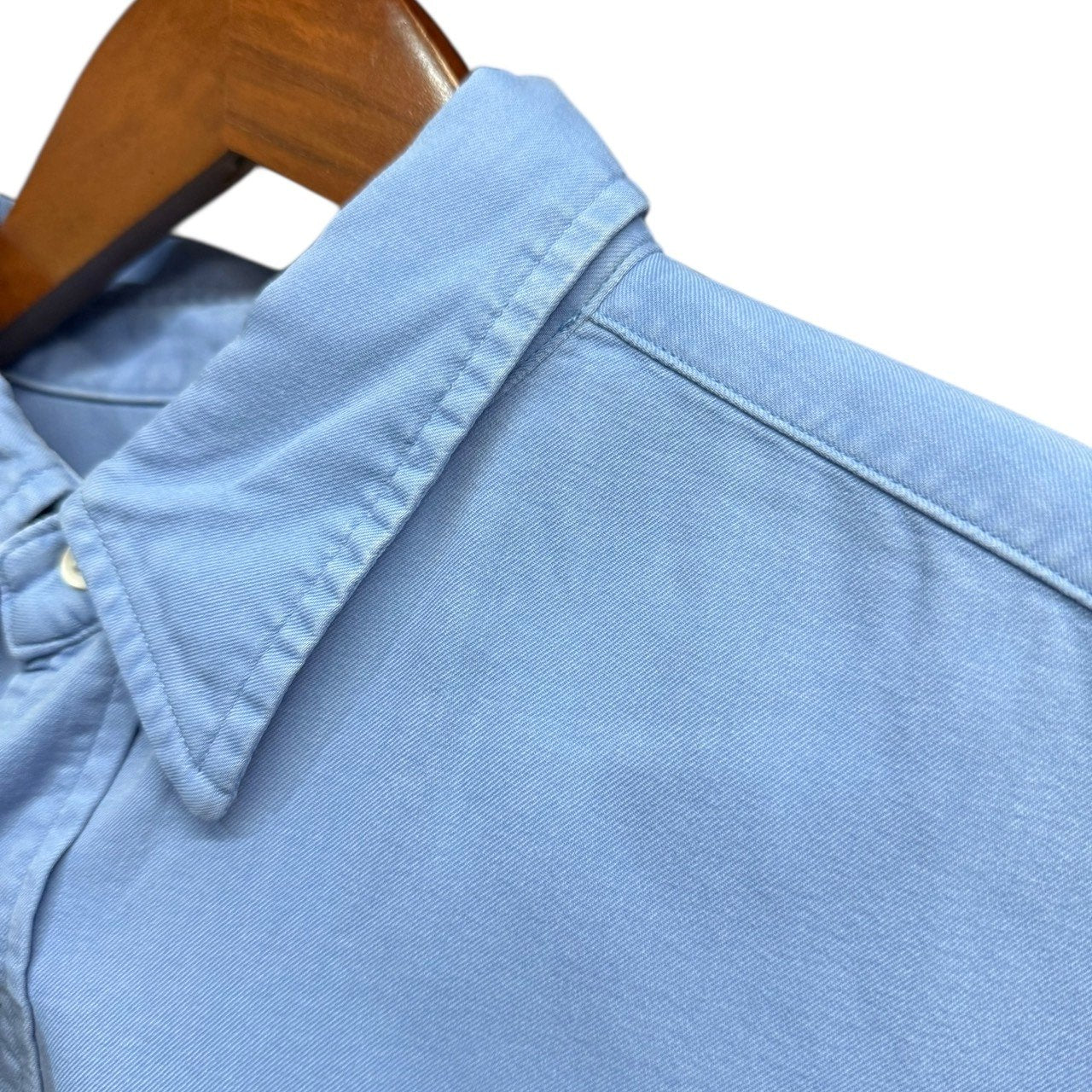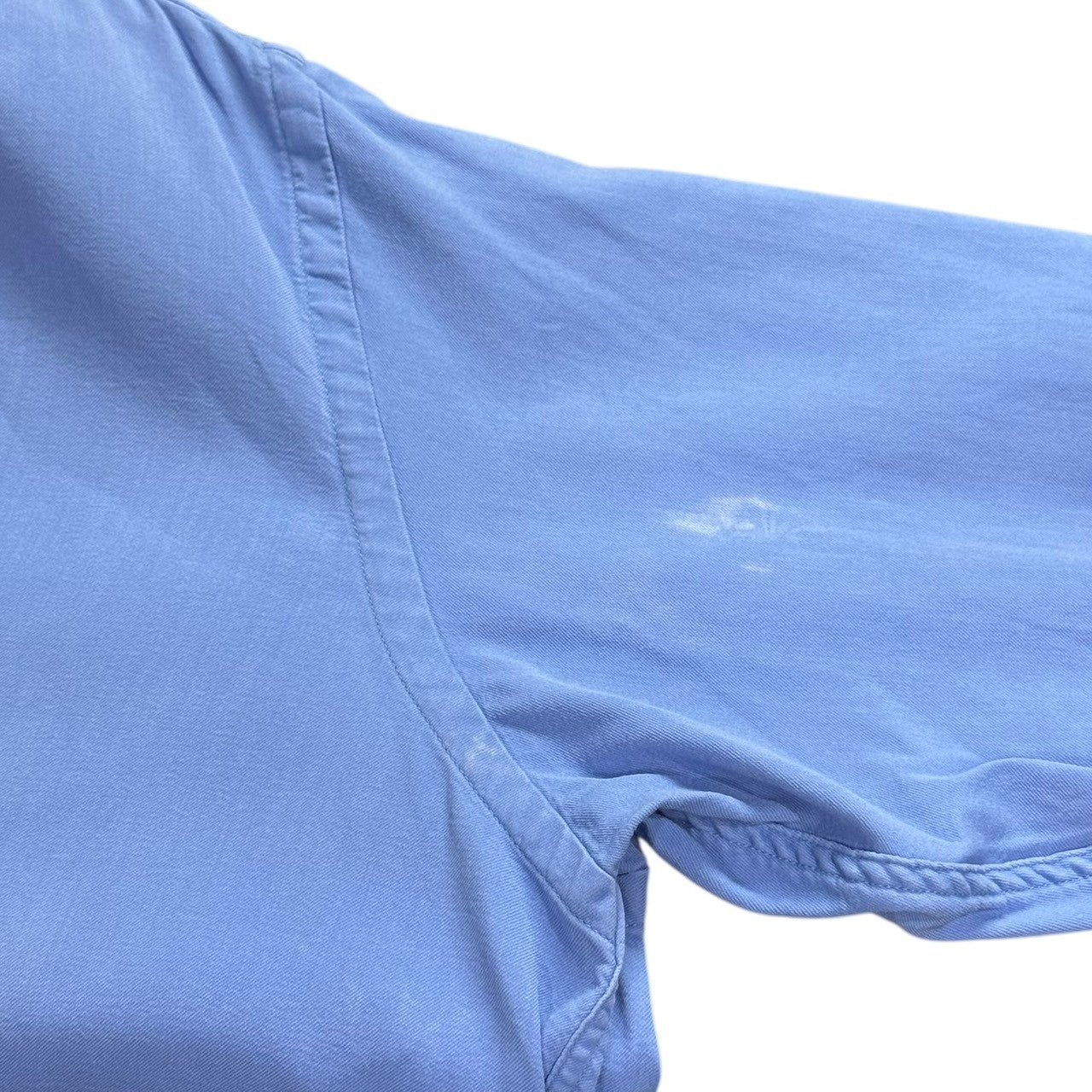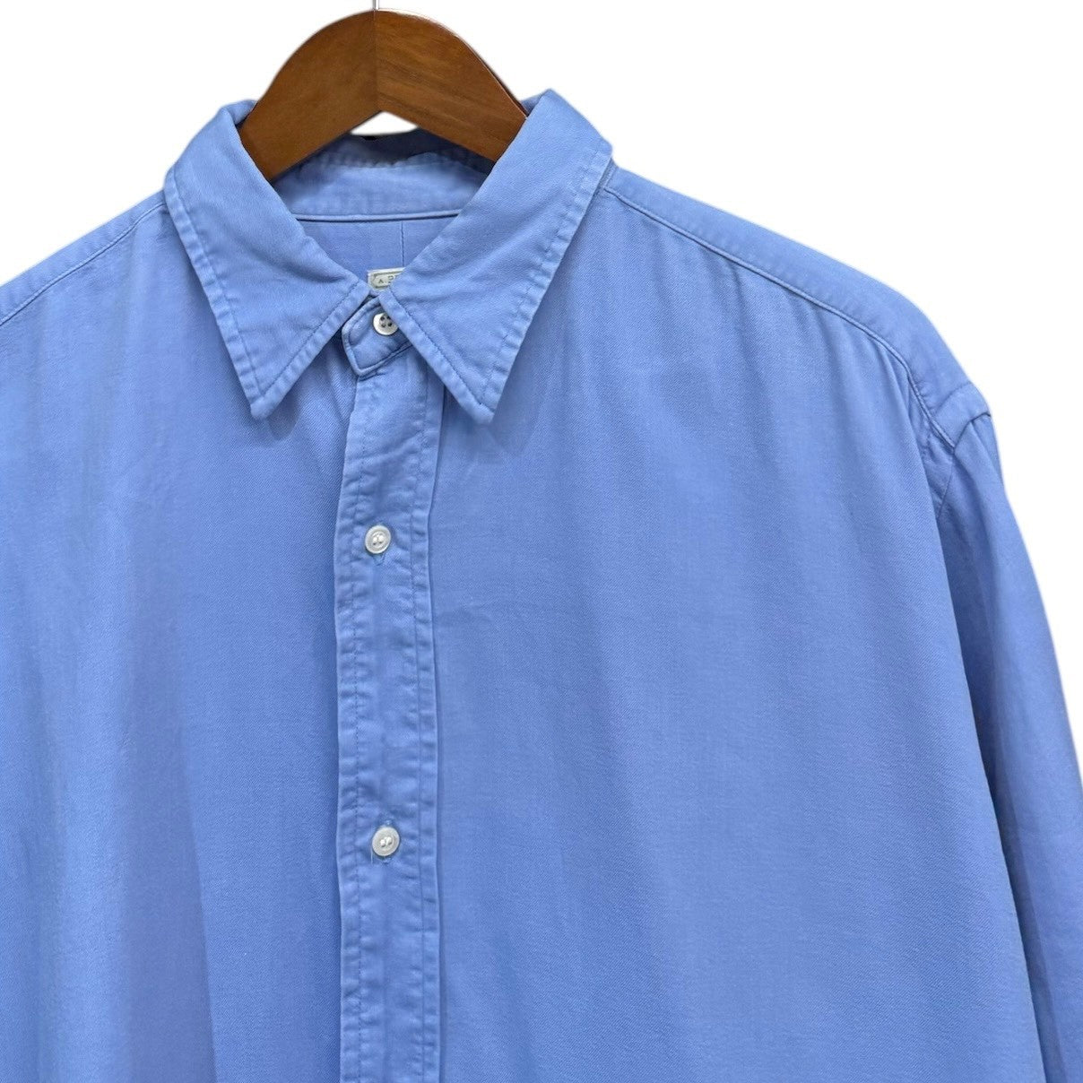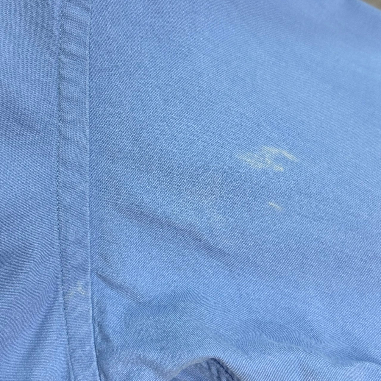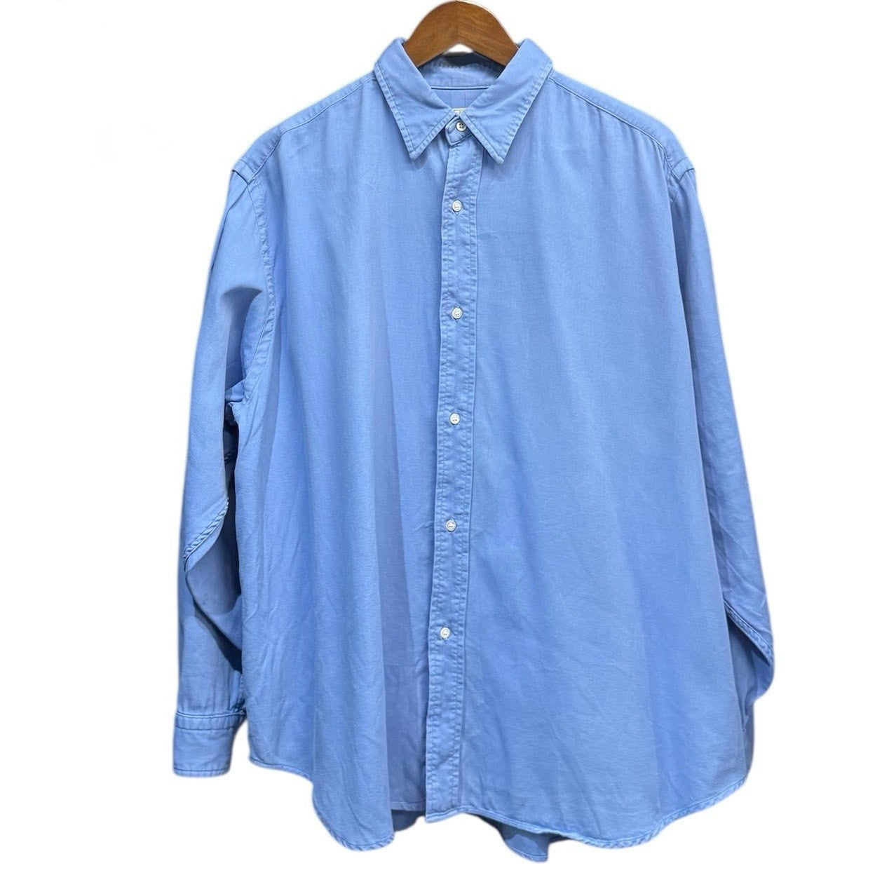 | 備考 | 90年代のツイルB.D.シャツをベースに、レギュラーカラーにアレンジした定番型のシャツ。表地は経緯共に100/2のスーピマコットンを使用して高密度に織り上げた二重織ツイル生地。前処理工程を連続機で通さず、あえて手間のかかるジッカー機で行う事で、生地にテンションをかけずより生地に膨らみを持たせています。さらに、シルケット加工を省く事で、より綿本来の膨らみや風合いが感じられます。反応染で染色された一着。参考定価:41,800円(税込)※襟内薄汚れ、右袖薄汚れ、左袖付近汚れなど全体的に汚れございますので完璧を求めるかたや古着にご理解ないかたはご購入をお控えくださいませ。 |