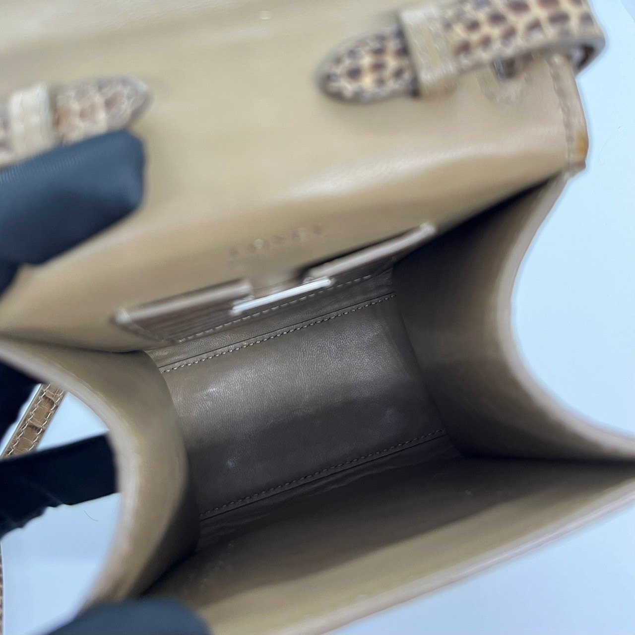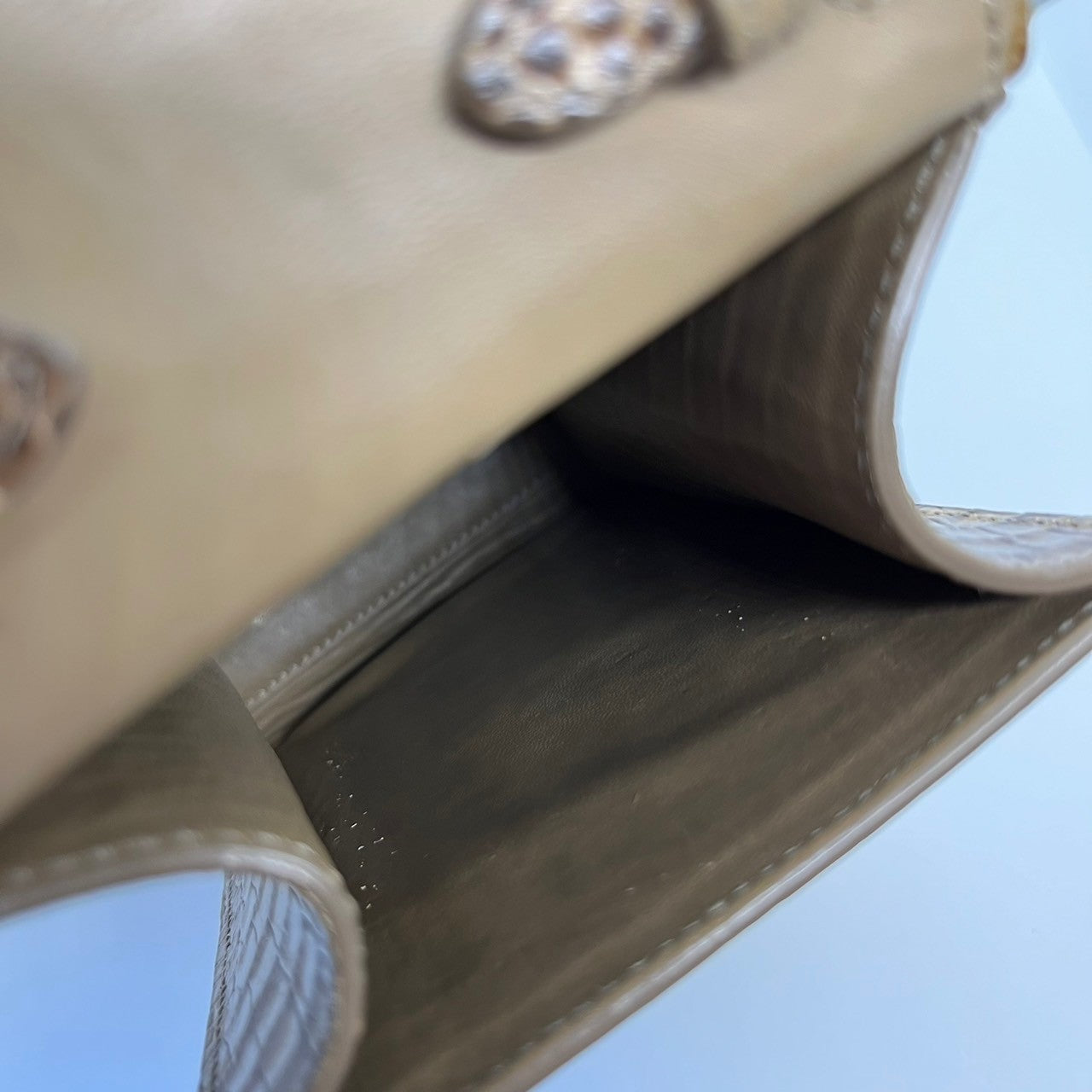 備考  クールなクロコ型押しレザーが上品なアイテム。カジュアルなシーンからドレスシーンまで活躍してくれるバッグです。※内側小傷ございますが着用に支障をきたす大きなダメージはございません。完璧を求めるかたや古着にご理解ないかたはご購入をお控えくださいませ。