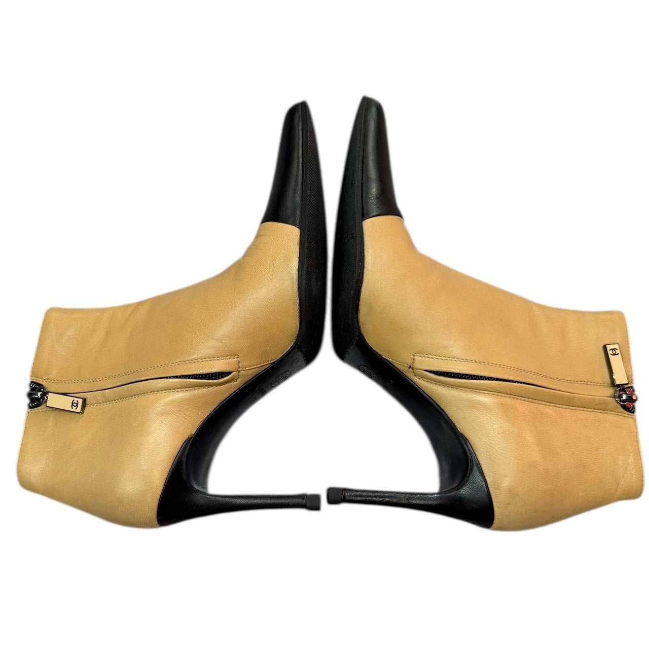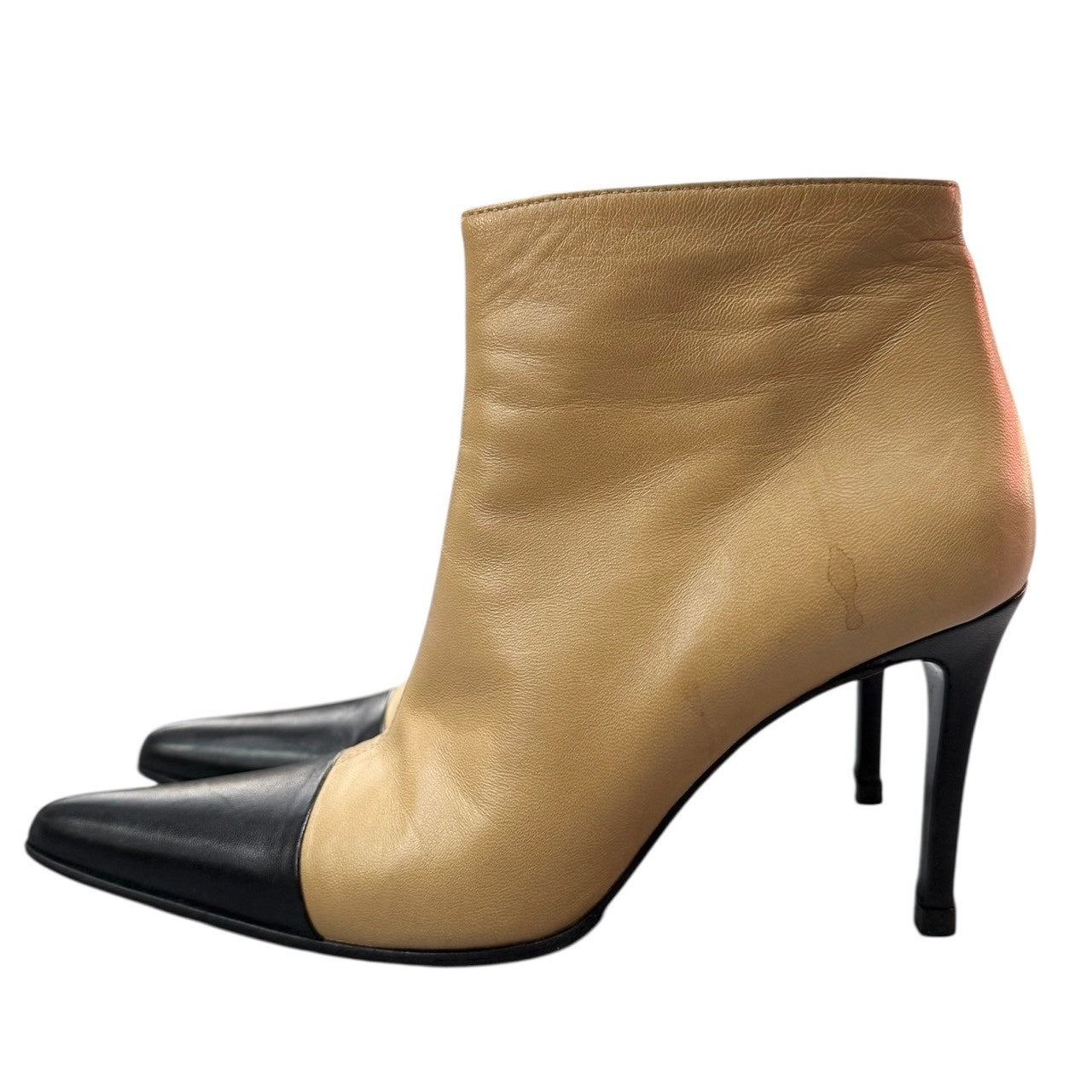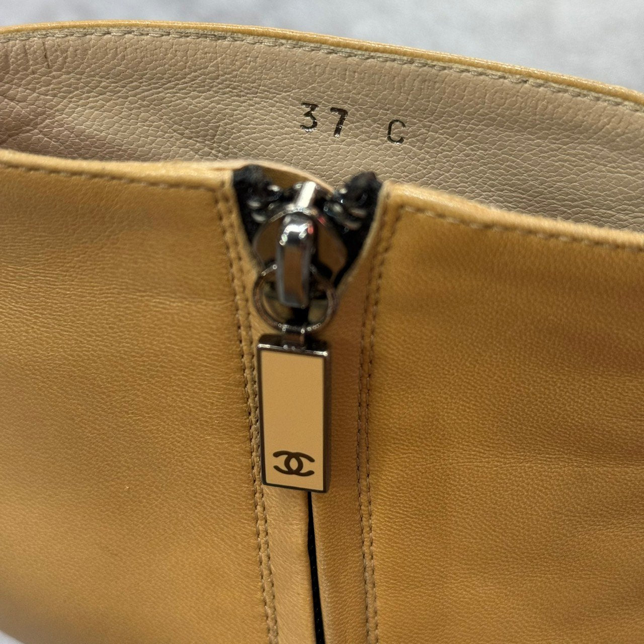 CHANEL シャネル サイドジップバイカラーブーツ ピンヒール 37 ベージュ 14916