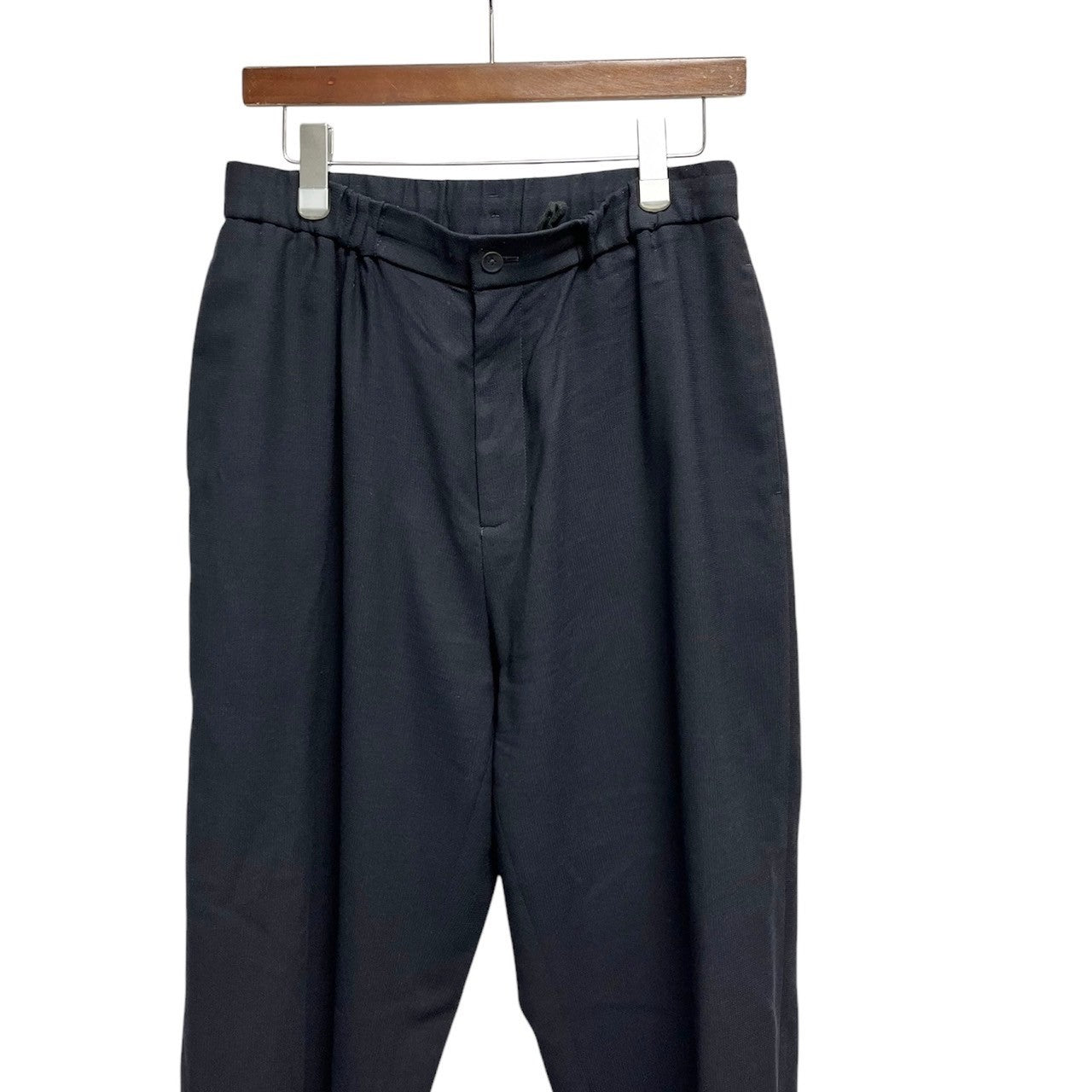 備考  裾に向かってゆるやかなテーパードシルエットが魅力的な一本。ウエストはゴムと内側に共紐のイージーパンツ仕様。上品さの中に程よい抜けを感じる汎用性の高いパンツです。※目立った汚れはございませんが完璧を求めるかたや古着にご理解ないかたはご購入をお控えくださいませ。