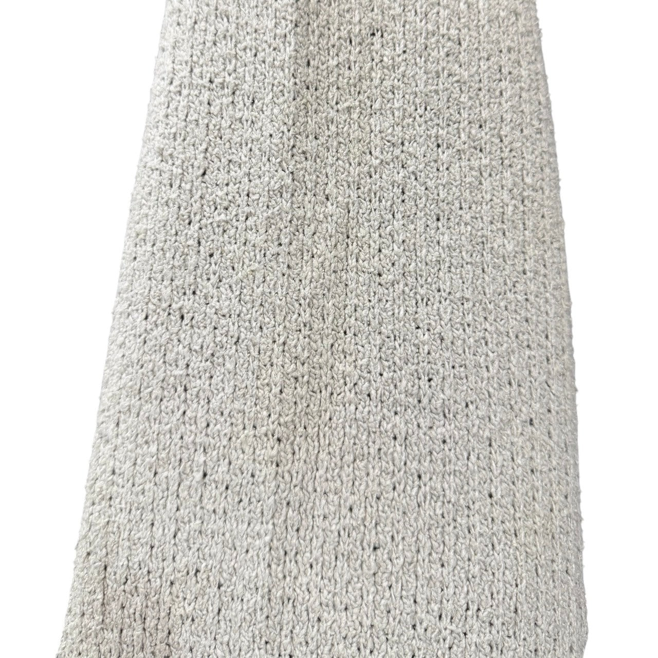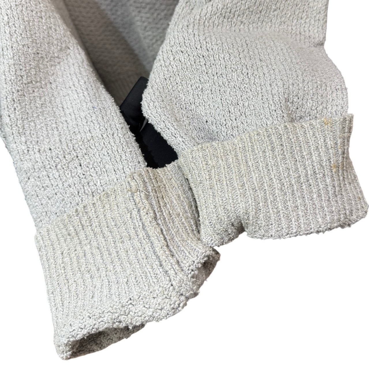 備考  UNUSEDのハンドステッチングシルクカーディガンです。プルオーバーのニット同様に、柔らかく風通しの良いシルク100%のニット素材。フロントは帯状の紐をスリットに通す仕様です。もちろんスリットに通さずにそのまま垂らしたり、結び方をアレンジしたりと変化をお楽しみいただけます。※右袖や両袖口シミなど全体的に使用感のあるお品物になりますので完璧を求めるかたや古着にご理解ないかたはご購入をお控えくださいませ。