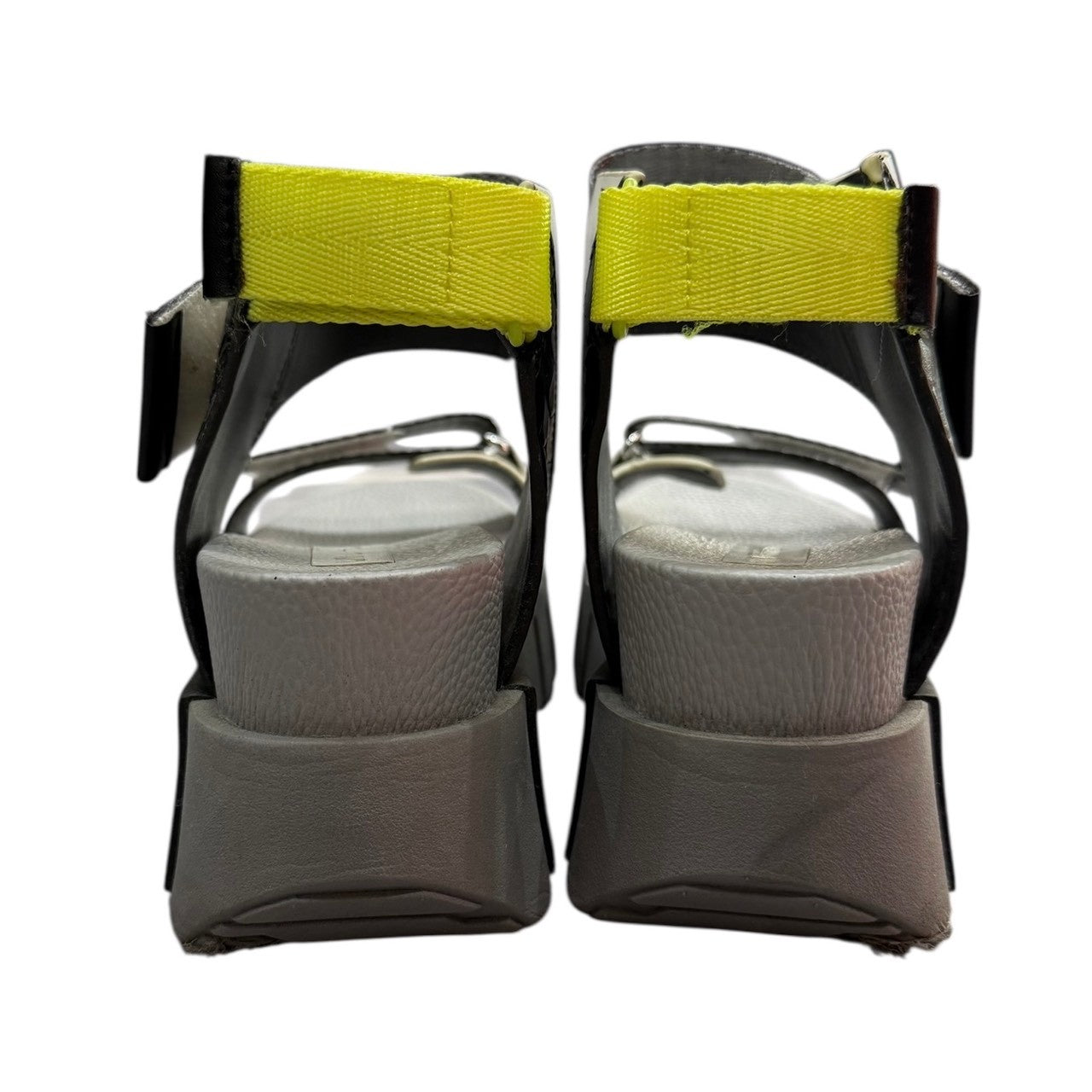 備考  デザイン性と機能性を兼ね備えたスポーツサンダル。軽く、クッション性に優れた厚底ソールは抜群の履き心地。かかと/足の甲/爪先のベルクロストラップを調整し、足の形に合わせお好みのサイズ感で着用可能。参考定価:37,400円(税込)※ソール削れなど使用感ございますので完璧を求めるかたや古着にご理解ないかたはご購入をお控えくださいませ。