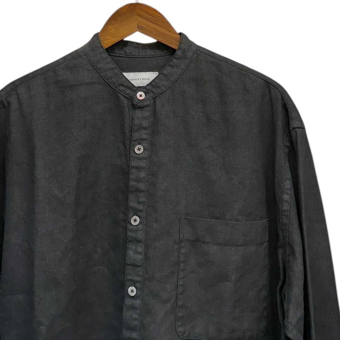 ADAM ET ROPE アダムエロペ ルーズシルエットバンドカラーリネンスキッパーシャツ L ブラック 15037