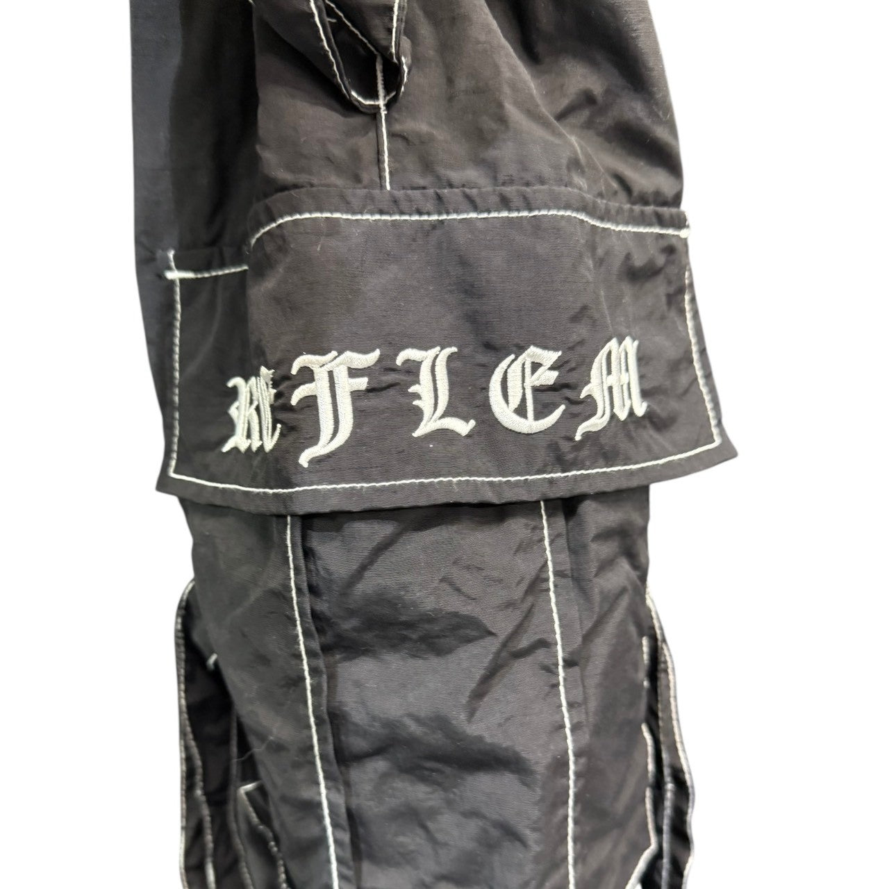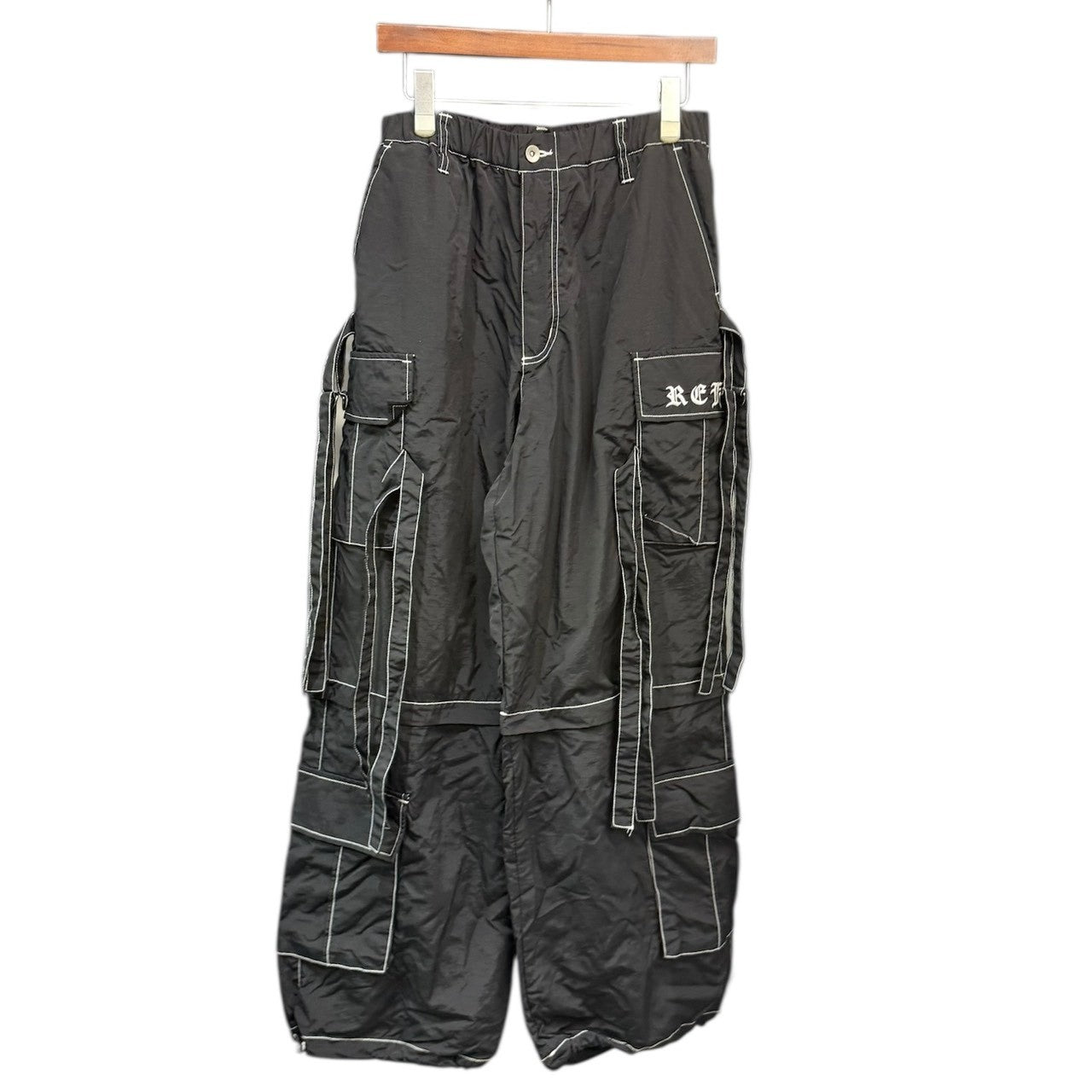 | 備考 | REFLEMのロゴ刺繍入りのワイドパンツ。裾のアジャスターでシルエット変更も可能。セパレート仕様でハーフパンツにも。ダークストリートをはじめ様々なスタイリングに相性抜群です。出回りも少なくこの機会にぜひ。参考定価:16,280円(税込)※目立った汚れはございませんが完璧を求めるかたや古着にご理解ないかたはご購入をお控えくださいませ。 |