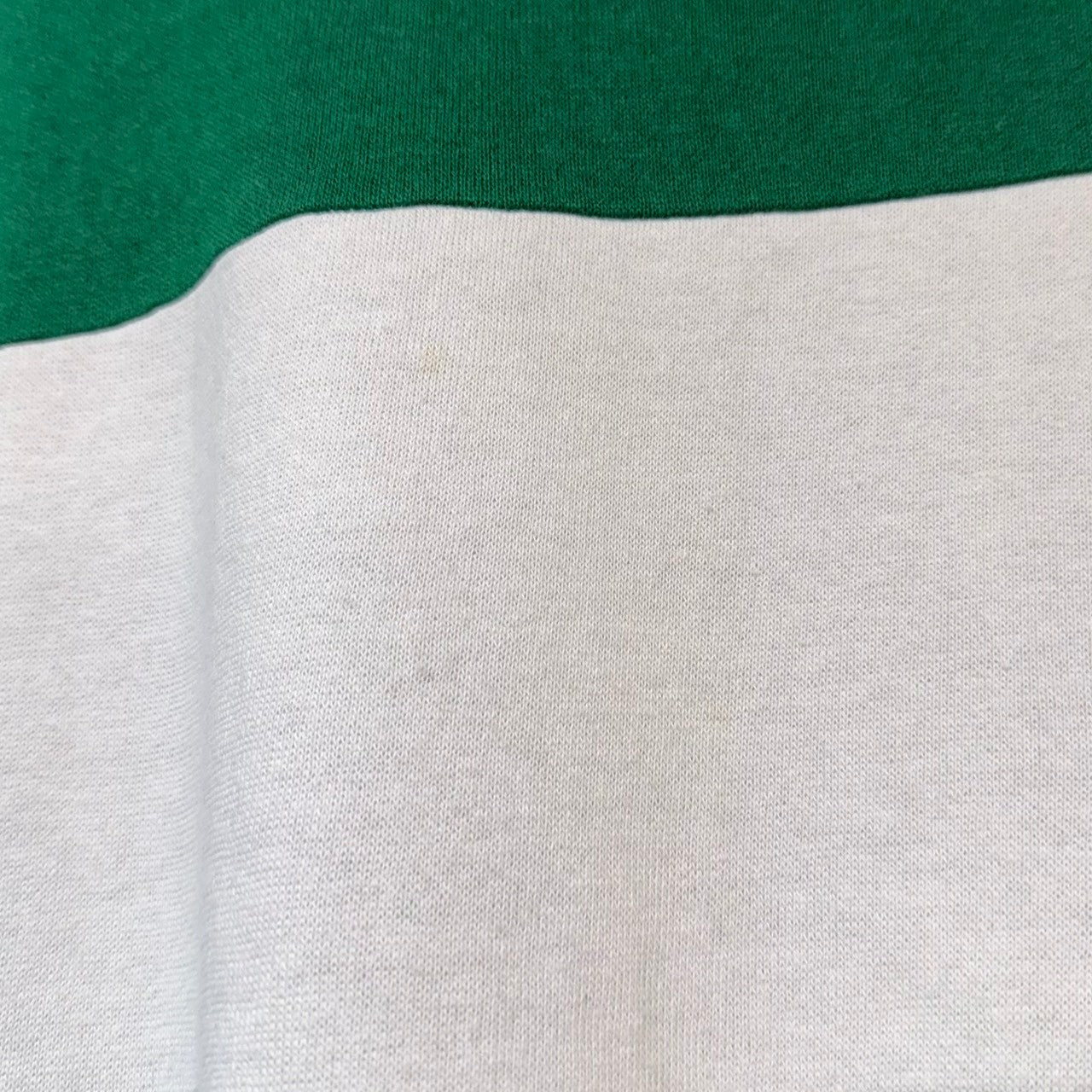 備考  グリーンとホワイトのコントラストが美しい一着です。※フロントや袖部分の白い所に複数箇所シミございますので完璧を求めるかたやヴィンテージアイテムにご理解ないかたはご購入をお控えくださいませ。