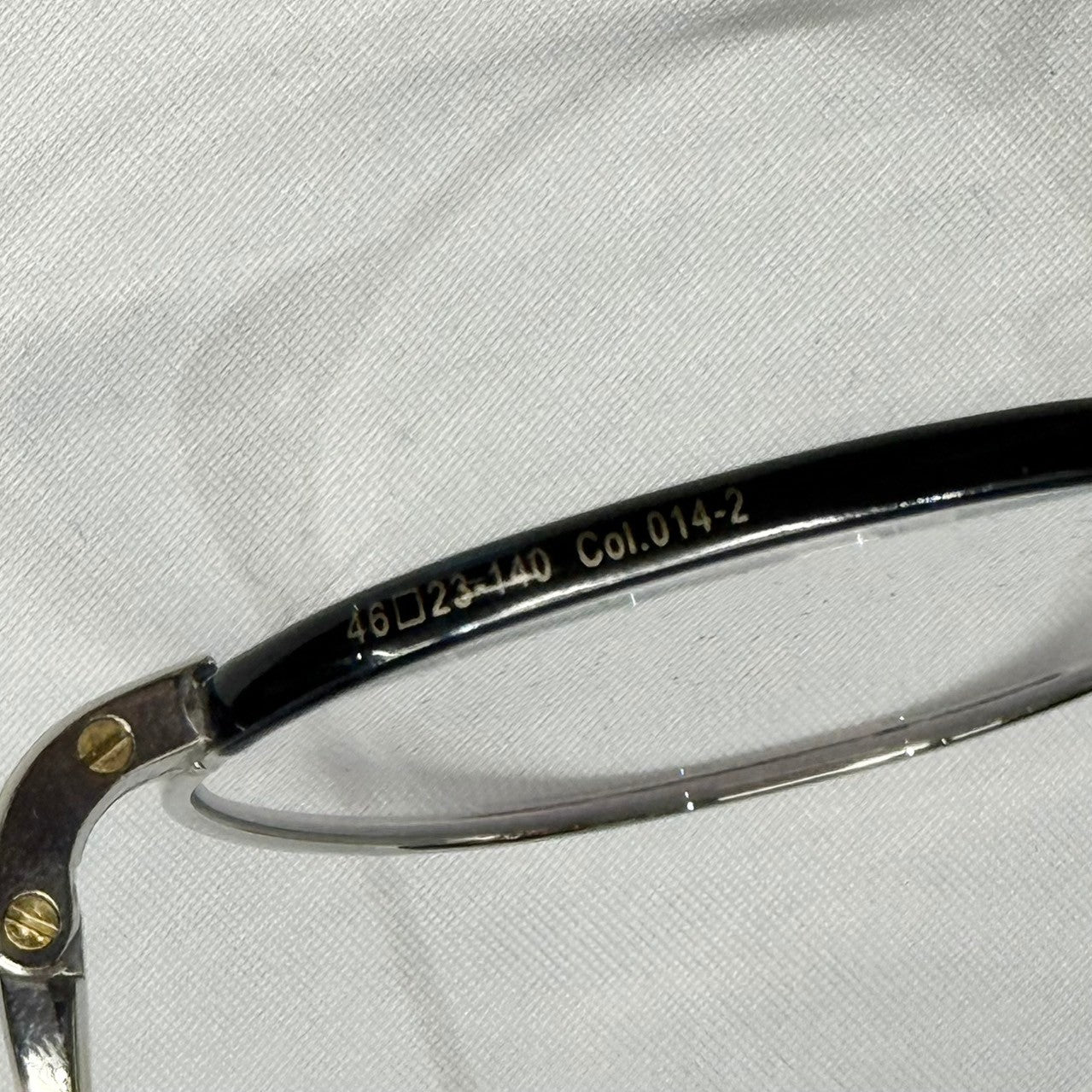 備考  モデル名、Editor (エディター)は編集者の意味。OGbyらしく伝統的なスタイルをその導入としつつも、コンテンポラリーなデザインでフィニッシュした一本。女性にもオススメです。Col.014-2は、クラウンパントスタイルにシルバーのメタルフレームをベースとしたモデル。上リムに施されたブルーのエナメル塗装が、シンプルなシェイプに奥行きをもたせることに一役買っています。※目立った汚れはございませんが完璧を求めるかたや古着にご理解ないかたはご購入をお控えくださいませ。