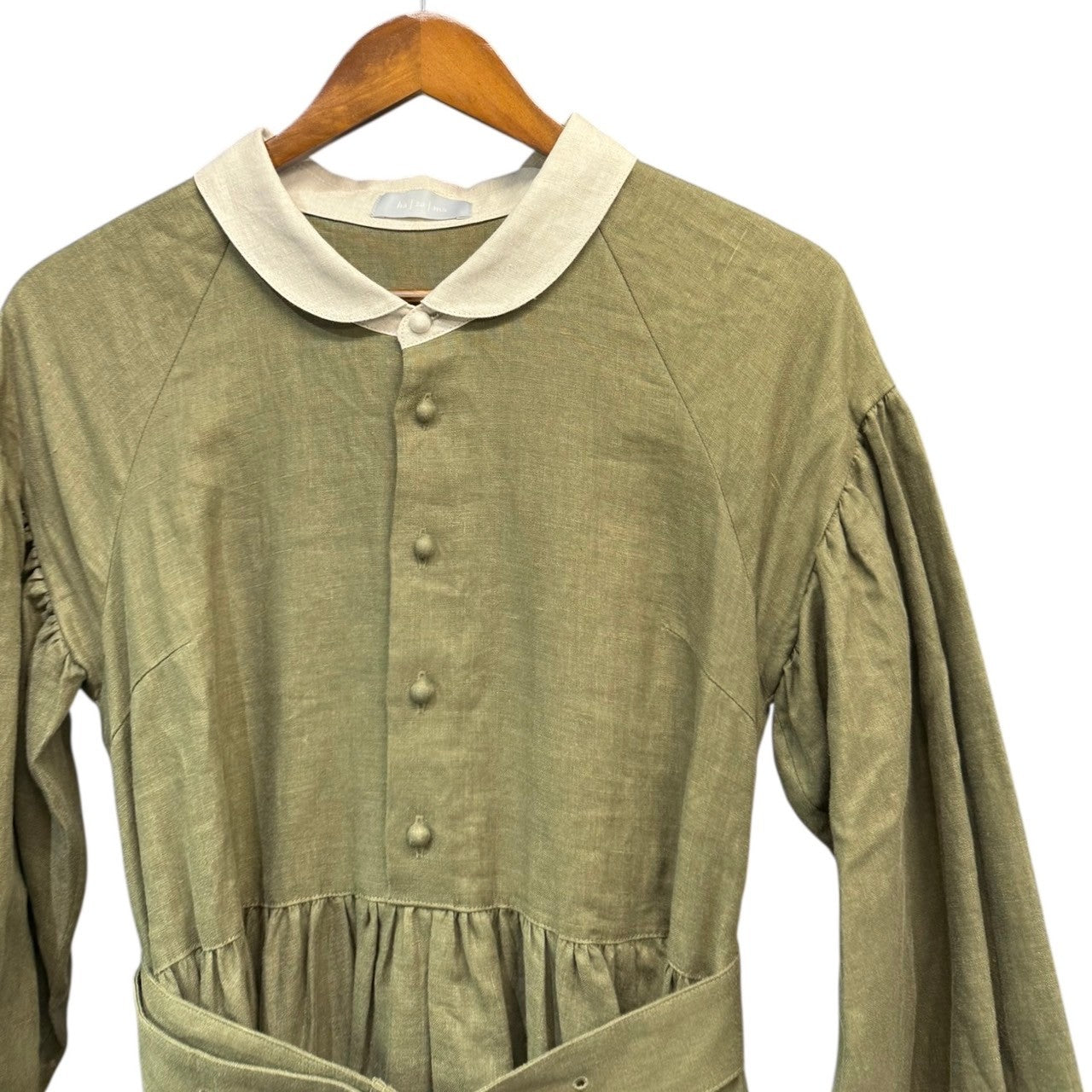 備考  リネン素材の柔らかな生地感とギャザーが美しい一着です。※目立った汚れはございませんが完璧を求めるかたや古着にご理解ないかたはご購入をお控えくださいませ。