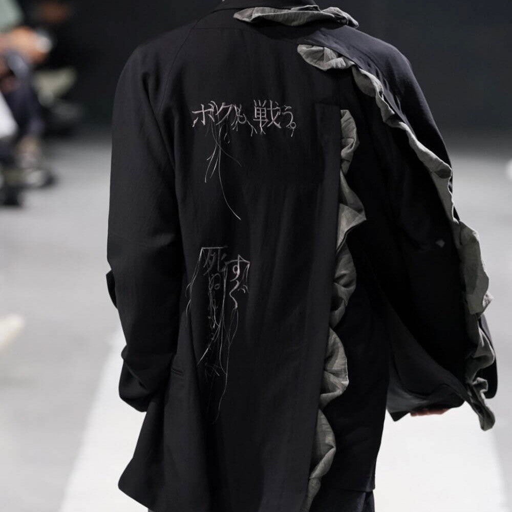 Yohji Yamamoto POUR HOMME ヨウジヤマモトプールオム 24SS W/RY HARD TWISTED GABARDINE BACK PT JACKET メッセージ刺繍スナップボタンジャケット HS-J28-102 14254