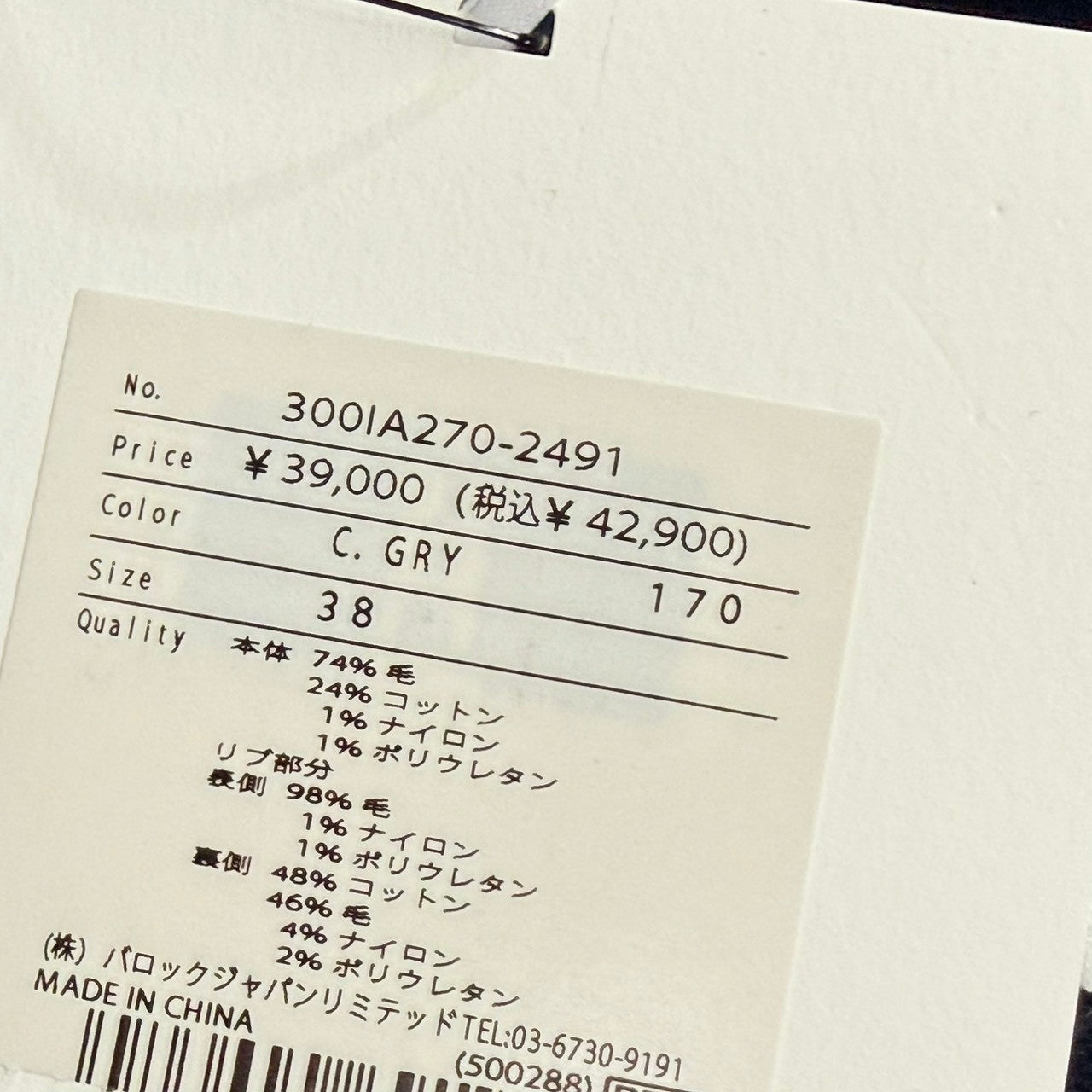 | 素材 | ウール×コットン×ナイロン×ポリウレタン |