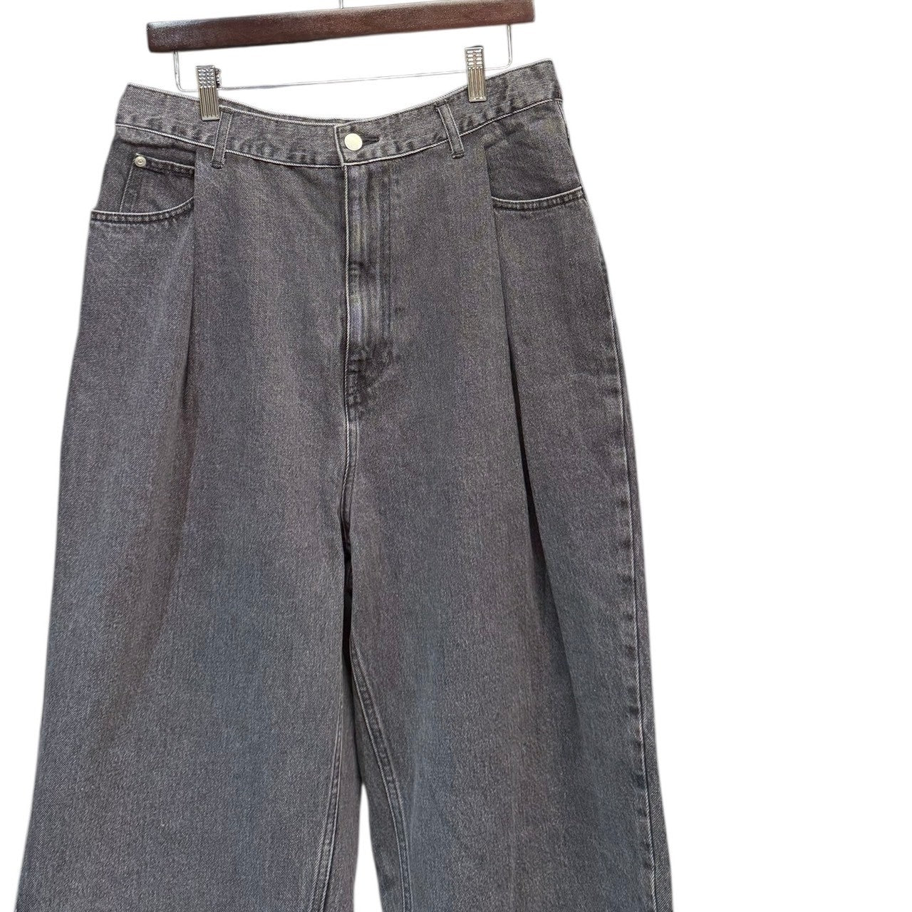 備考  ヴィンテージのようなフェード感と相反し、タックの深さや立体感がモダンな表情が演出してくれるブラックデニム。フロントだけでなくバックにもタックを配し、細やかなディティールまで拘った一本になります。前後にタックを入れる事で穿いた時に分かる独特なドレープ感があり、ワイドシルエットながらシャープなデザインに仕上がった唯一無二なデニムです。参考定価:41,800円(税込)※目立った汚れはございませんが完璧を求めるかたや古着にご理解ないかたはご購入をお控えくださいませ。