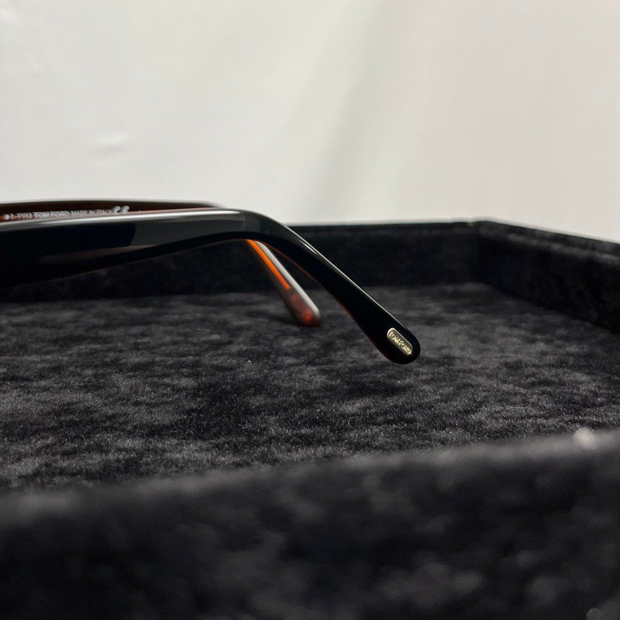 備考  トムフォードのアイウェアを代表する太い縁のウエリントンスタイルが魅力的な一本です。外側はブラックに内側がべっ甲なのもオシャレな一本。※若干傾きございますので完璧を求めるかたや古着にご理解ないかたはご購入をお控えくださいませ。