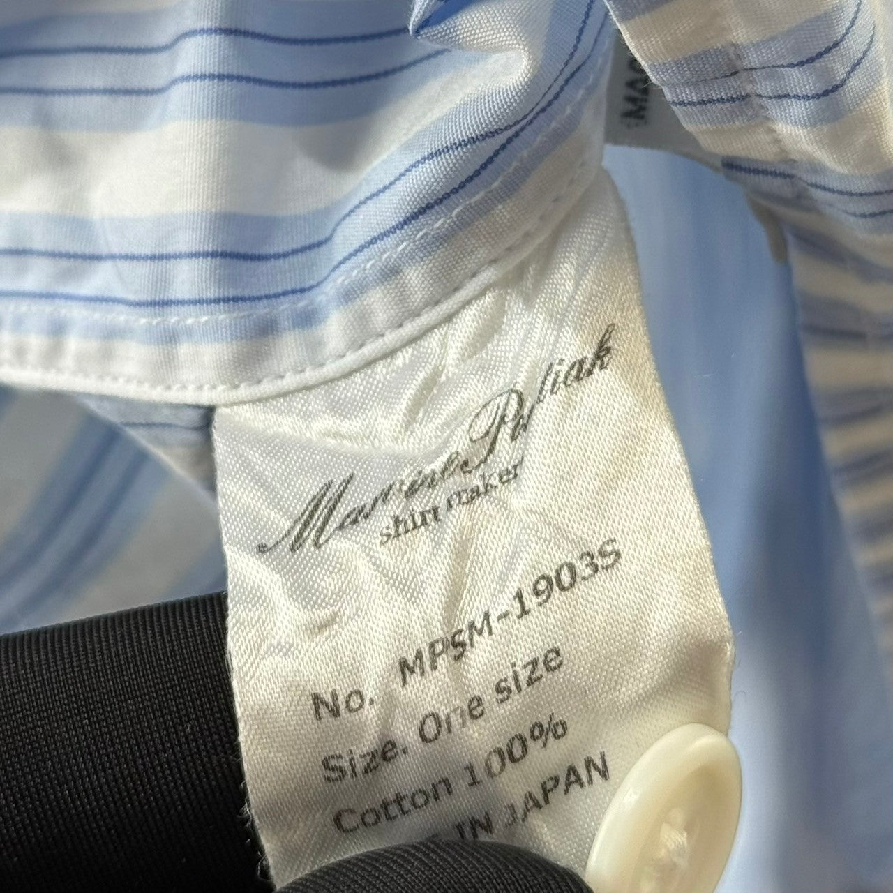 • 画像をギャラリービューアに読み込む, Marvine Pontiak Shirt Makers マーヴィンポンティアックシャツメーカーズ Open Collar SH ストライプオープンカラーシャツ F ブルー MPSM-1903S 14858