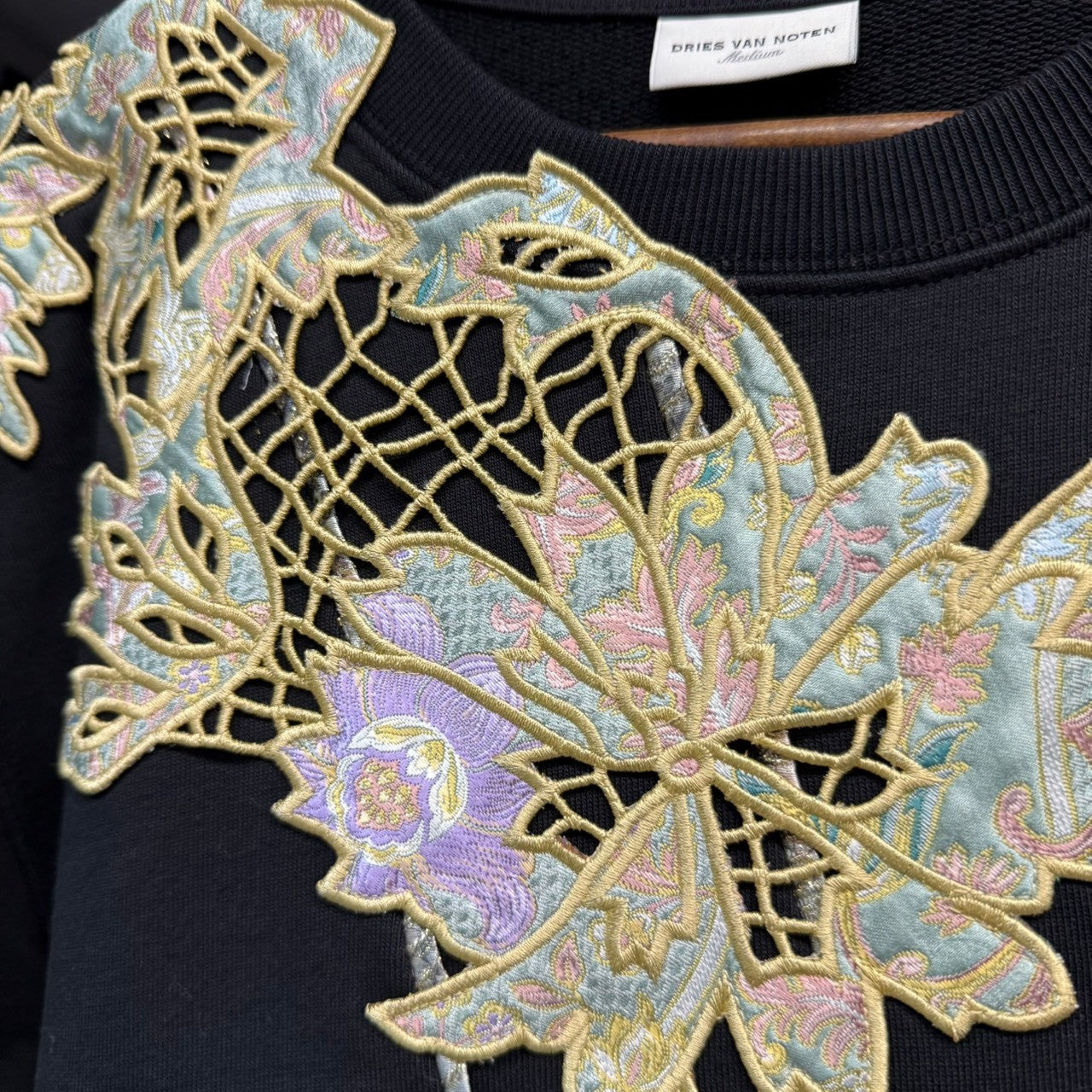 DRIES VAN NOTEN ドリスヴァンノッテン 23AW HARO EMB 7644 W.K.SWEATER 花柄刺繍スウェット M ブラック 15132