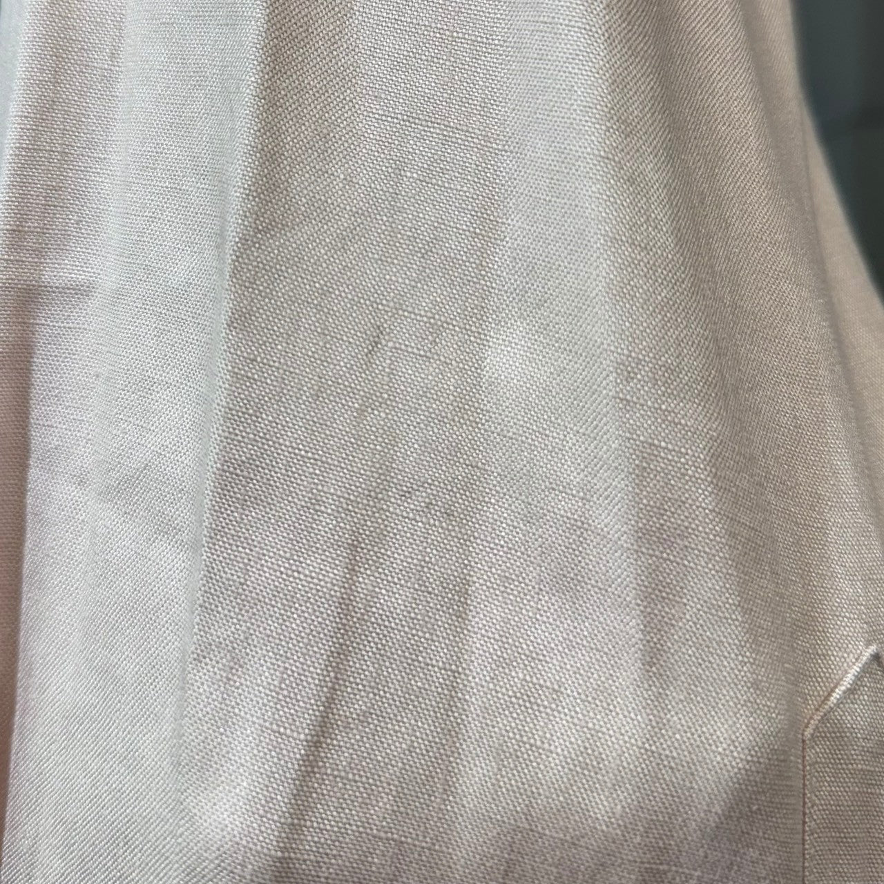備考  麻のナチュラル感を残しつつ、交織ではなく混紡糸を使用したことにより、レーヨン多混率でも手洗い可能なテキスタイルになります。タッチやドレープ性はレーヨンの滑らかさがあり、カジュアル過ぎない素材感に仕上がっています。大きな襟も特徴的なクラシカルな一着。参考定価:35,200円(税込)※左袖薄汚れございますので完璧を求めるかたや古着にご理解ないかたはご購入をお控えくださいませ。